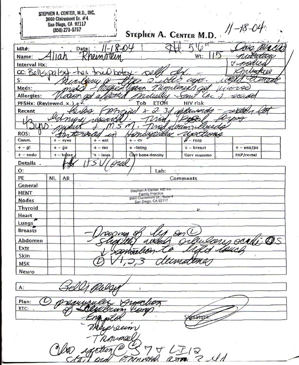 my next appointment - Nov 30th - I showed Dr. Center